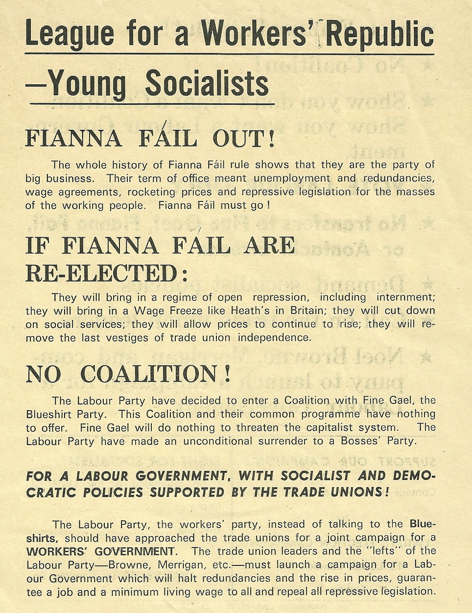 Tags: 1973 General Election, Irish Left, Irish Politics, League for a workers Republic, LWRYS, Politics, young socialists