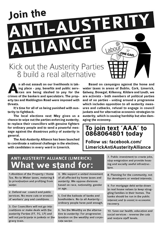 Leaflet from Maurice Quinlivan -Sinn Fein -Limerick City North April 3, 2014