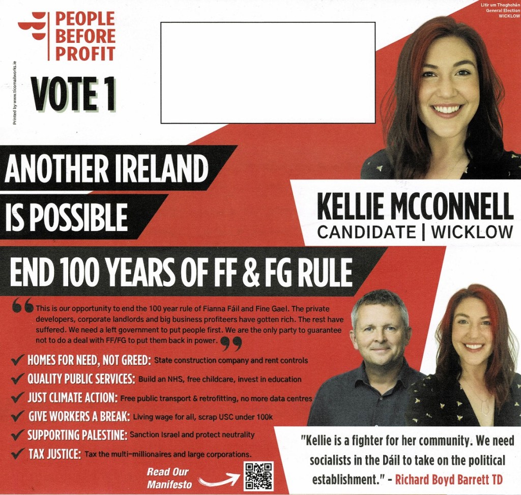 A Leaflet from Kellie McConnell who is running for People Before Profit in Wicklow in the 2024 General Election