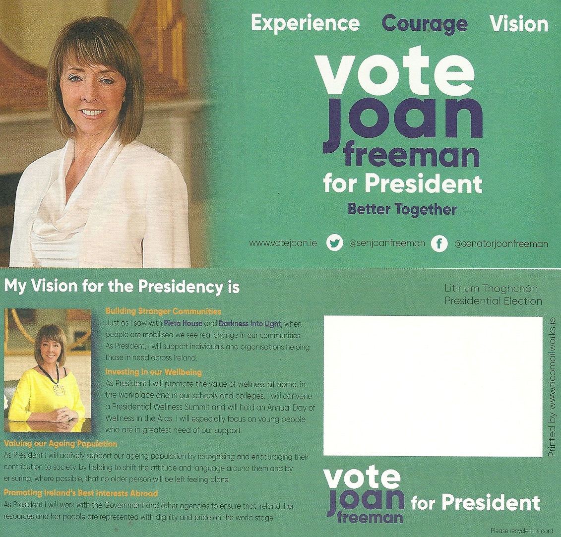 From the 2018 Presidential Election Campaign, The Litir um Thoghchán from Independent Senator Joan Freeman.