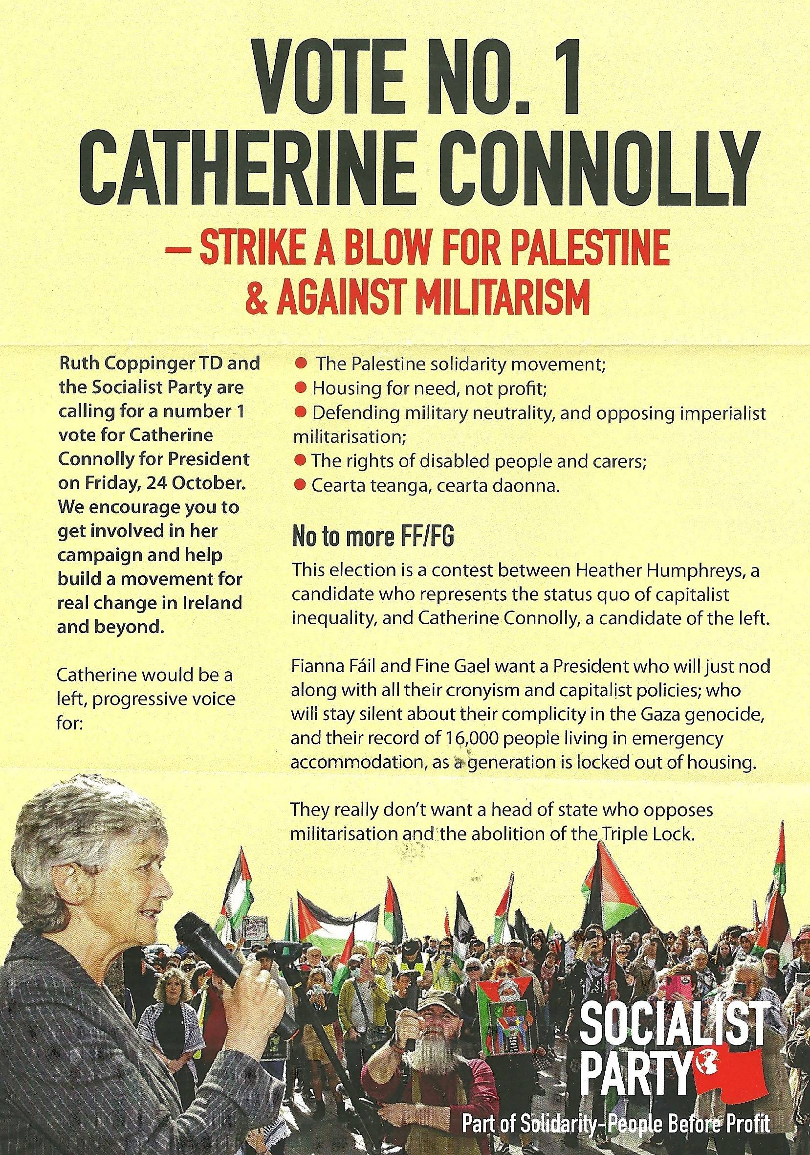 A Leaflet from Catherine Connolly who is running as an Independent in the 2025 Presidential Election.
