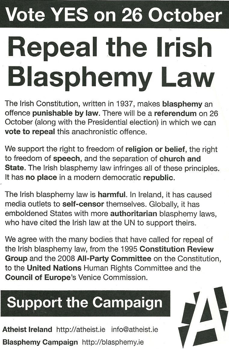 From the forthcoming Divorce REferendum, a Vote No leaflet from The Alliance for the Defence of the Family and Marriage.