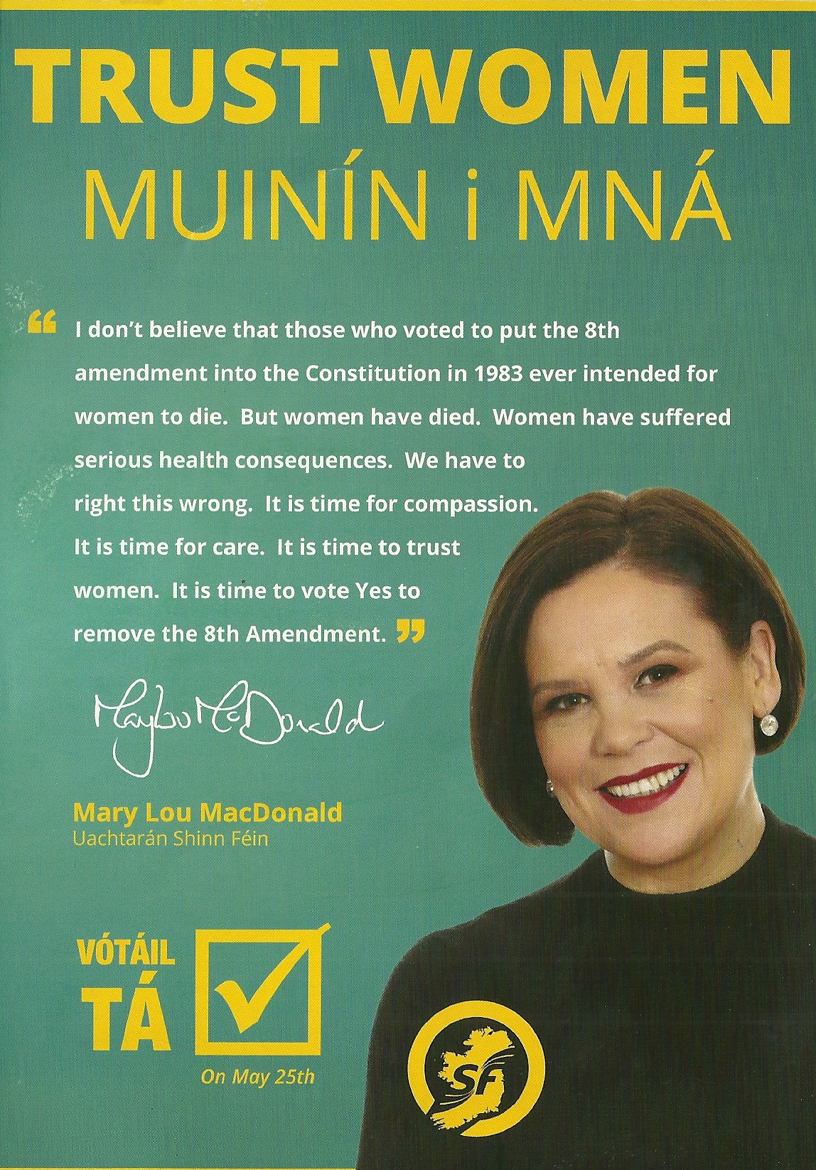 “Trust Women” … “”Vótáil Tá” #Repealthe8th Leaflet from Sinn Féin April 11, 2018
