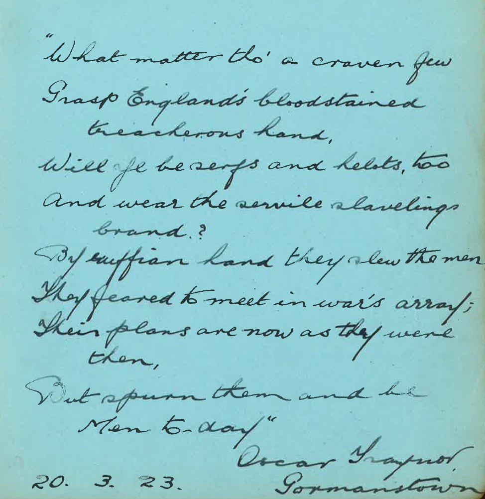 From the 1933 Northern Ireland Election a leaflet from Seán McCool running as a Republican un Derry City-Foyle. He polled 3,031 votes whilst his opponent James McCarroll (Nationalist) polled 6,557 votes. McCool was a prominent Republican and former Chief of staff of the IRA.