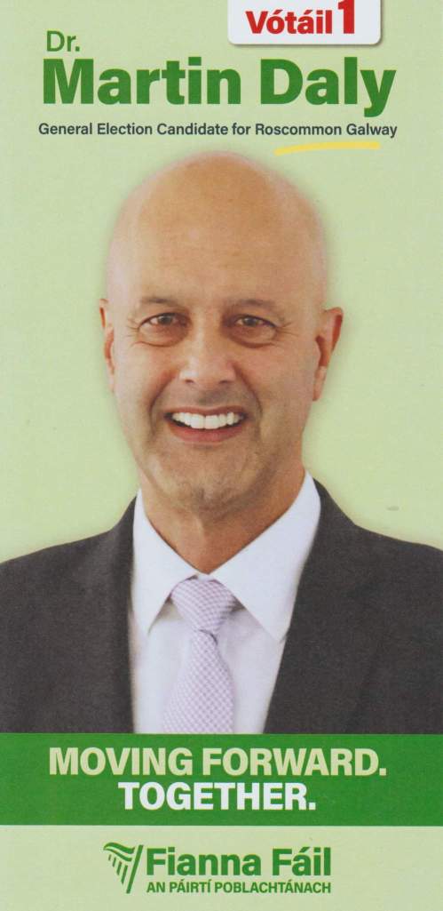 A leaflet from Martin Daly who is running for Fianna Fáil in Roscommon Galway in the 2014 General Election.