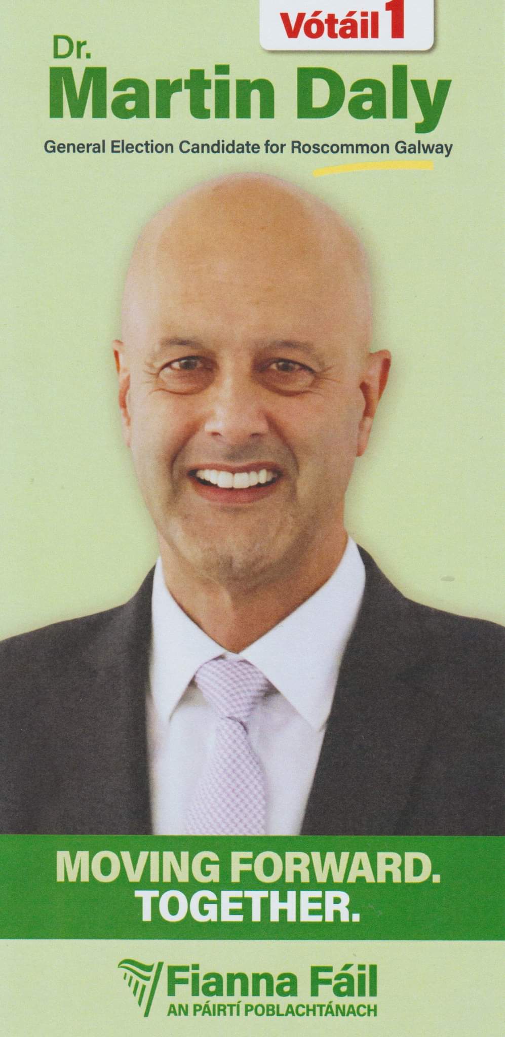 A leaflet from Martin Daly who is running for Fianna Fáil in Roscommon Galway in the 2014 General Election.