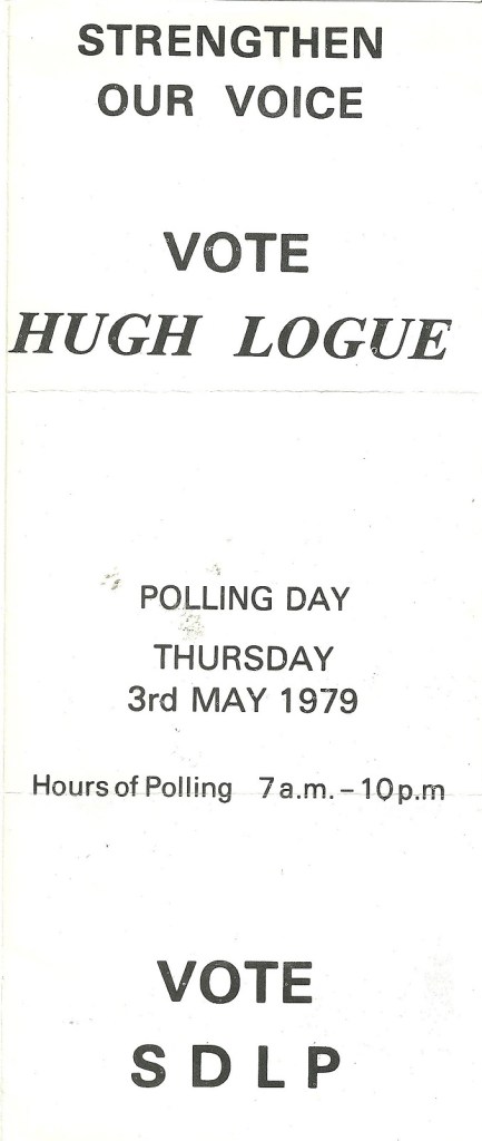 A leaflet from Hugh Logue who was running for the SDLP in Derry in the 1979 Westminster Election.