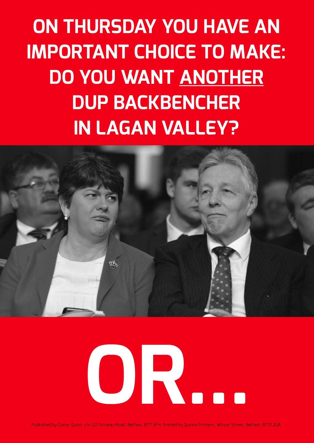 A leaflet “Do You Want Another DUP Backbencher in Lagan Valley?” from Pat Catney of The SDLP who is running in Lagan Valley.