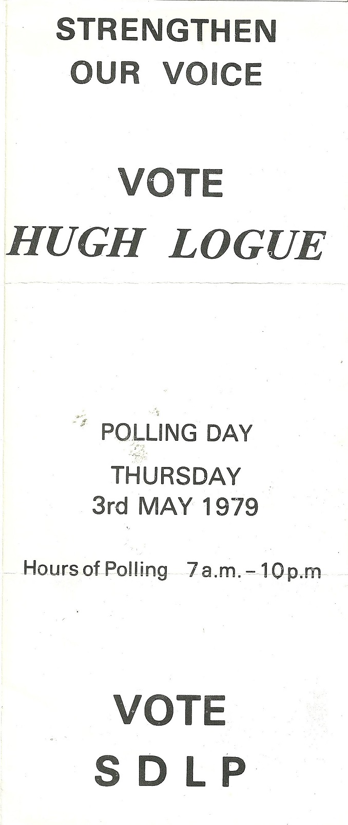 A leaflet from Hugh Logue who was running for the SDLP in Derry in the 1979 Westminster Election.