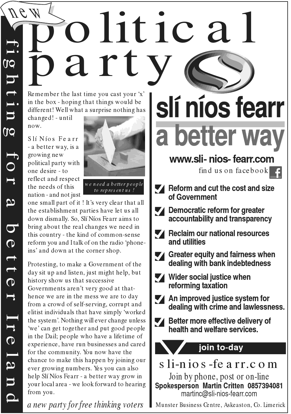“A New Political Party” -Leaflet from ‘Slí Níos Fearr’ giving details of their positions on various issues July 31, 2012