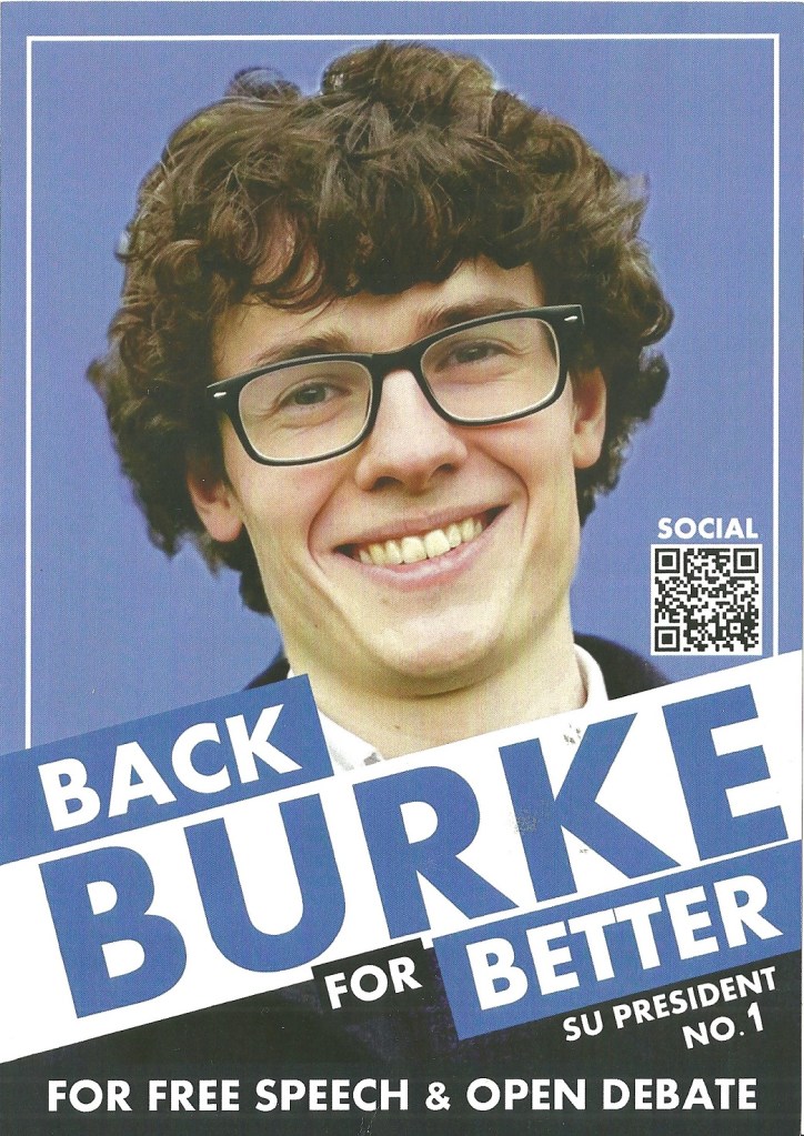 A leaflet from Elijah Burke who ran in the 2025 University of Galway Student Union Presidential Election. He polled around 13% of the vote and missed out. Many thanks to the sender