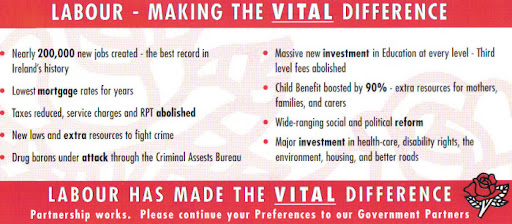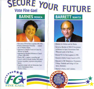 An unusual leaflet (and he had posters similar to the main picture around at the time too.) In 1992 he reckoned “.. by reducing expenditure on the border by 100 million pounds….creating 30,000 new jobs in Dublin from this saving…” Lots more good plans in the leaflet. Nice Dig at Taca in it too.
