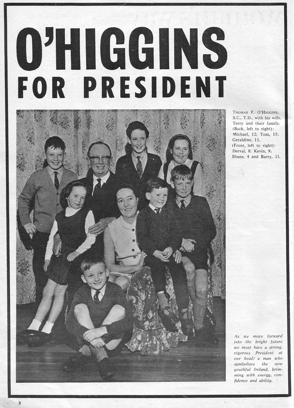 From the 1966 Presidential Election an ‘O’Higgins For President’ advert from Woman’s Way magazine June 13, 2013