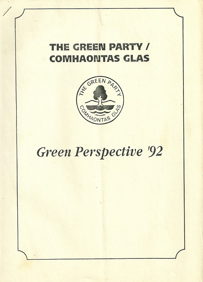“Green Perspective ’92” a policy Document from The Green Party detailing the Parties policy in a multitude of areas. I’ve Uploaded in pdf format here