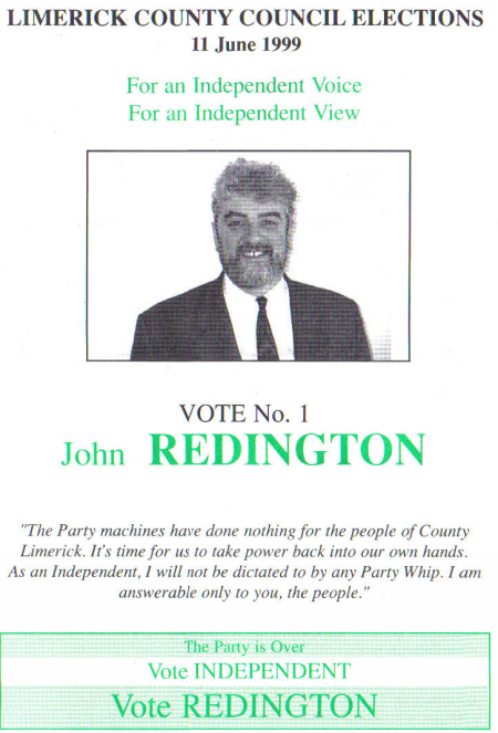 Independent candidate John Reddington, who states ‘The party machines have done nothing for the people of County Limerick …..’