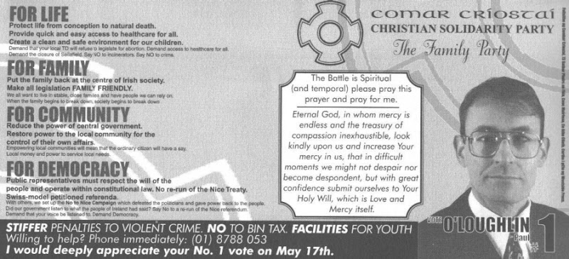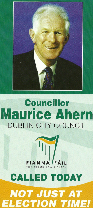 From the 2009 Dublin Central By-Election and the Local Elections of the same day where he was also standing a flyer from Fianna Fail candidate Maurice Ahern. Maurice Ahern is of course a brother of former Taoiseach Bertie Ahern and notes that should you be unable to contact Maurice then you could always contact Bertie at “St Lukes”.