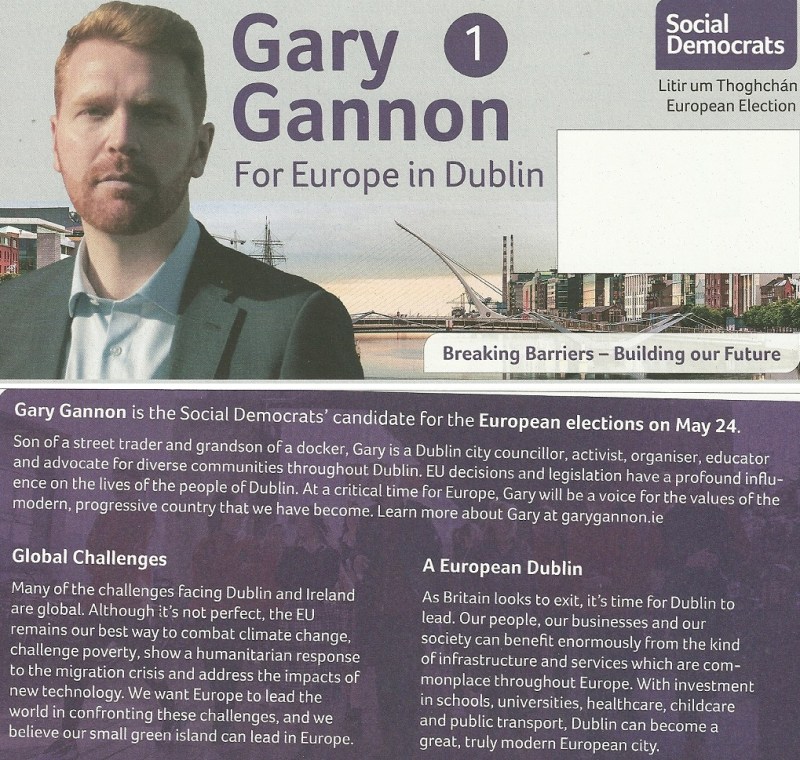 Leaflet from Ben Gilroy -Independent – Dublin #EP2019 May 12, 2019