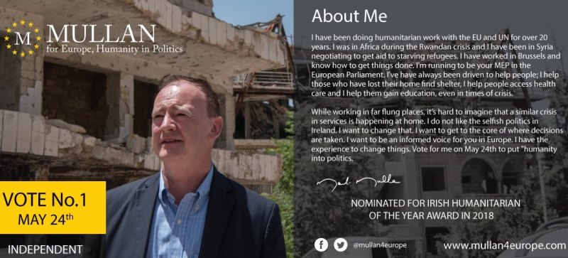 A Leaflet from Mark Mullan running as an Independent in Dublin in The European Elections