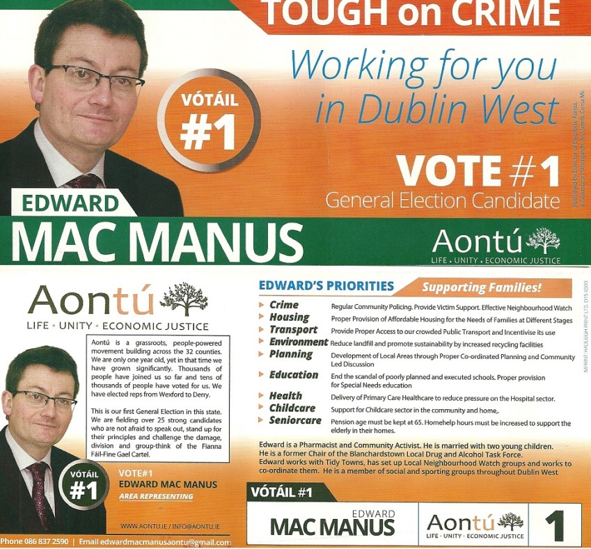 A Leaflet from Kevin ‘Boxer’ Moran who is running as an Independent in Longford Westmeath.