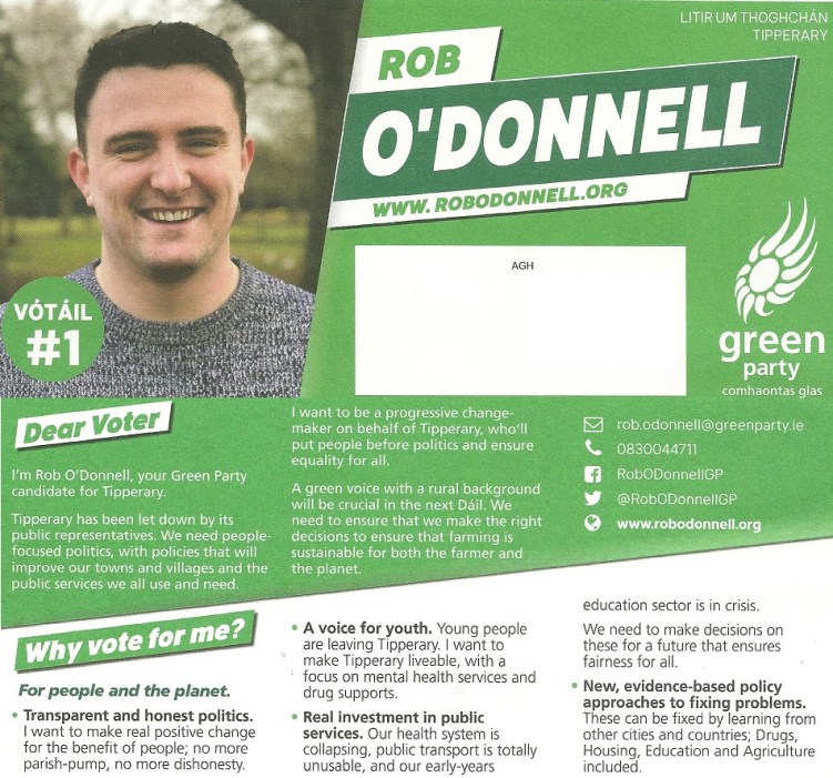 A Leaflet from David O’Reilly running as a Patriot Independent in Galway East in the 2020 General Election.