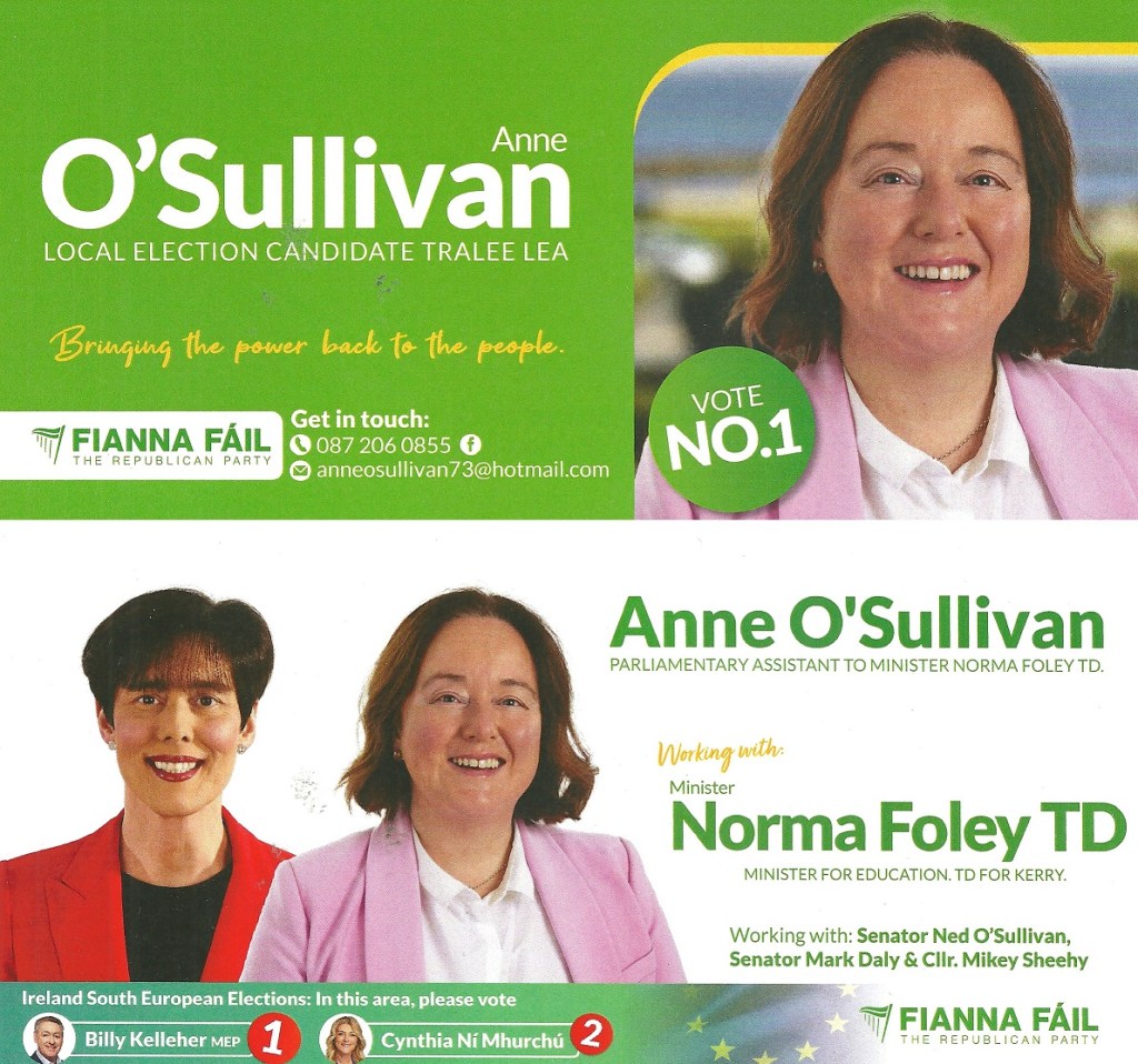 A leaflet from Anne O’Sullivan who is running for Fianna Fáil in Tralee in the 2024 Local Elections