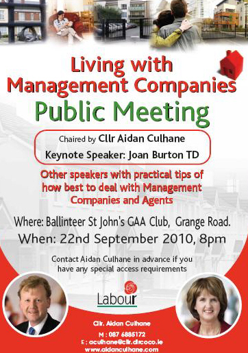 Living with Management Companies -Public Meeting with Joan Burton and Aidan Culhane-22nd Sept 2010 September 18, 2010