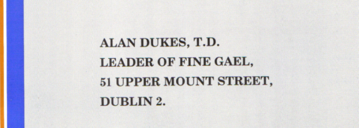 After the 1987 election Alan Dukes was appointed Fine Gael Leader. On the 2nd of September that year in an address to the Tallaght Chamber of Commerce, Dukes said “When the Government is moving in the right direction, I will not oppose the central thrust of its policy….”