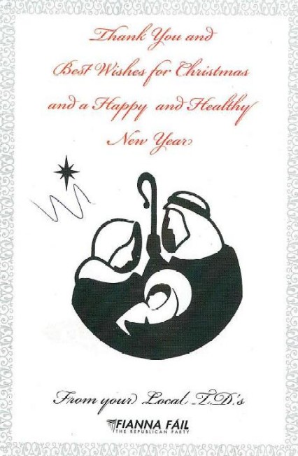 “Thank You and Best Wishes for Christmas and a Happy and Healthy New Year” – ‘From Your Local TDs -Fianna Fail’.