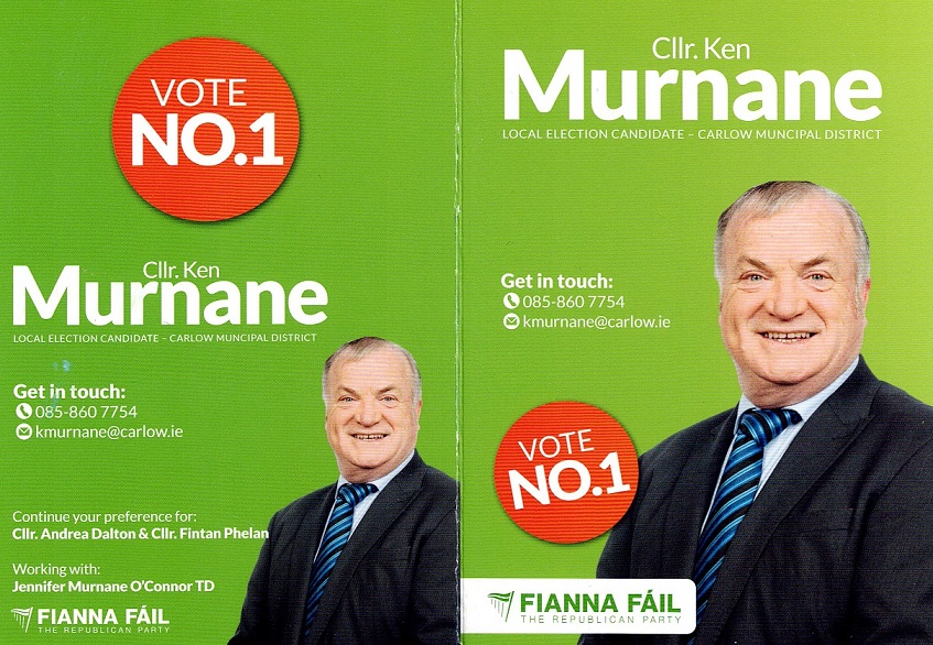 A leaflet from Ken Murnane who is running for Fianna Fáil in Carlow in the 2024 Local Elections