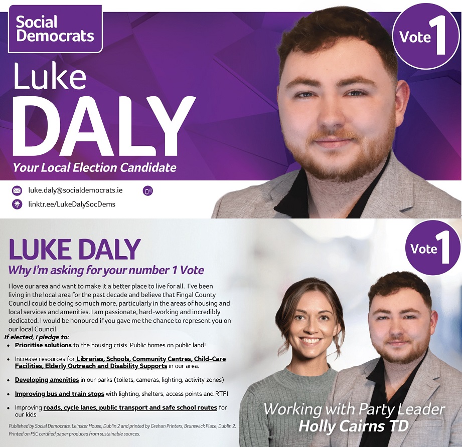 A leaflet from Luke Daly who is running for The Social Democrats in Castleknock in the 2024 Local Elections