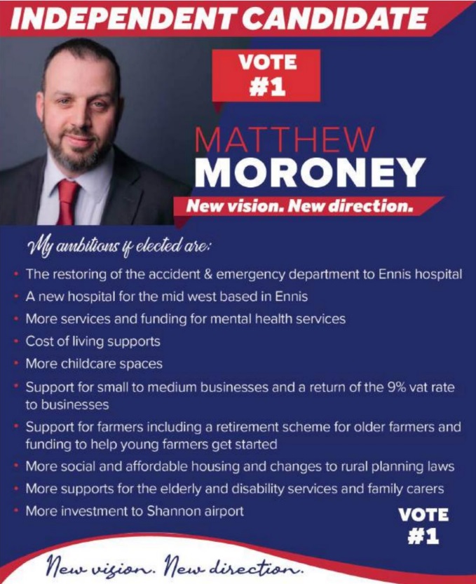 A Leaflet from Matthew Moroney who is running as an Independent in Clare in the 2024 General Election