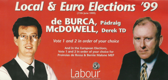 From the 1999 Local Elections in The Clontarf ward, Labour Party candidates Pádraig de Burca and Derek Mc Dowell.
