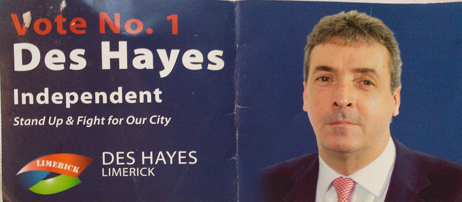 A poster and Press release from Desmond Hayes who is running as an Independent in Limerick City North for a seat on Limerick County Council.