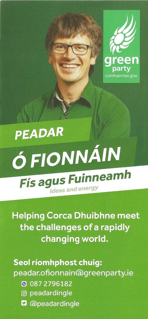 A Leaflet from Peadar Ó Fionnáin who is running for The Green Party in Dingle in the 2024 Local Elections