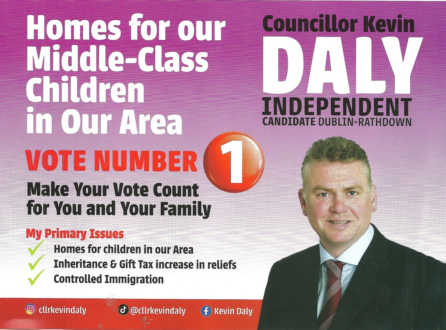 A Leaflet from Kevin Daly who is running as an Independent in Dublin Rathdown in the 2024 General Election