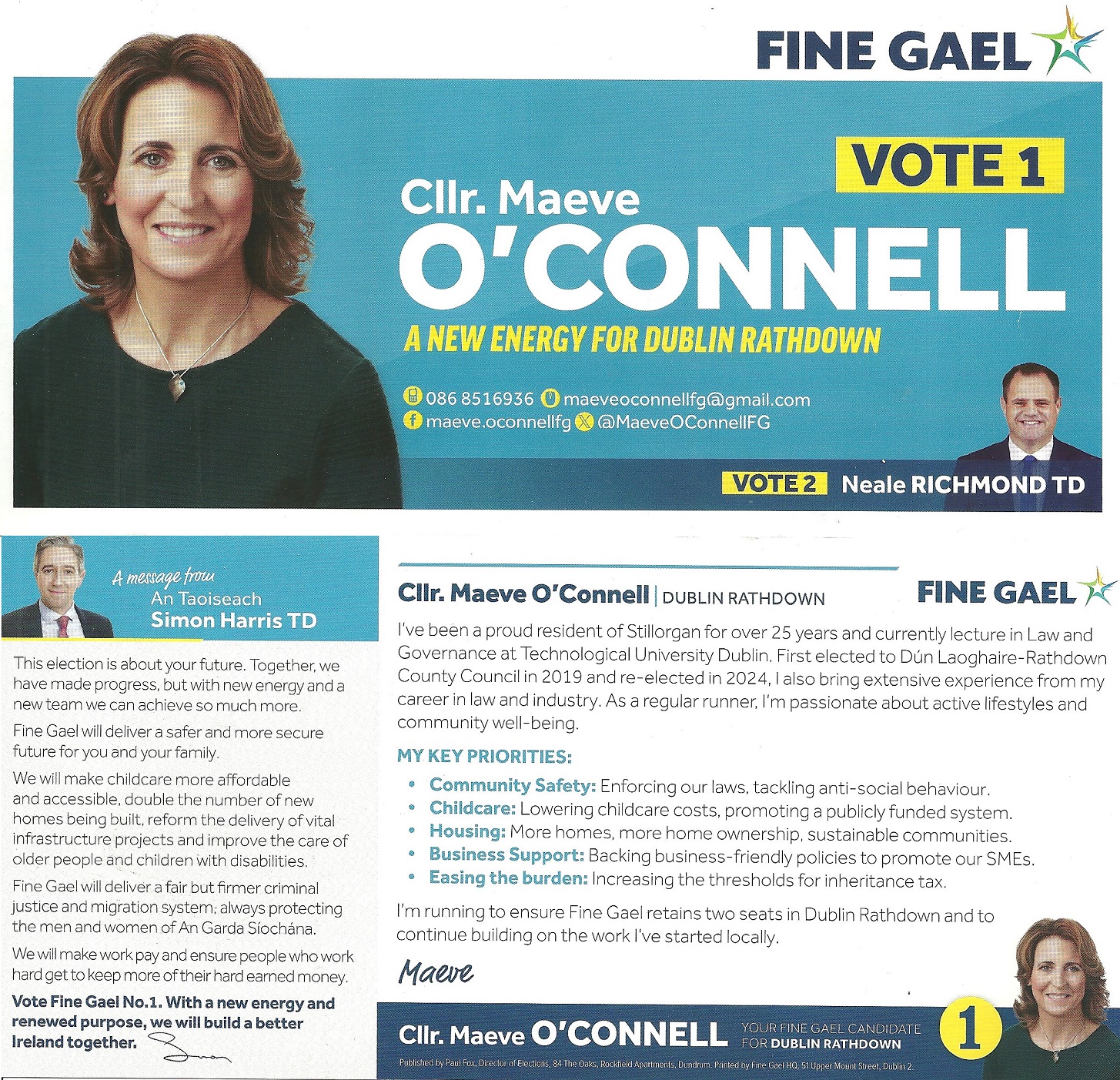 A Leaflet from Maeve O’Connell who is running for Fine Gael in Dublin Rathdown in the 2024 General Election