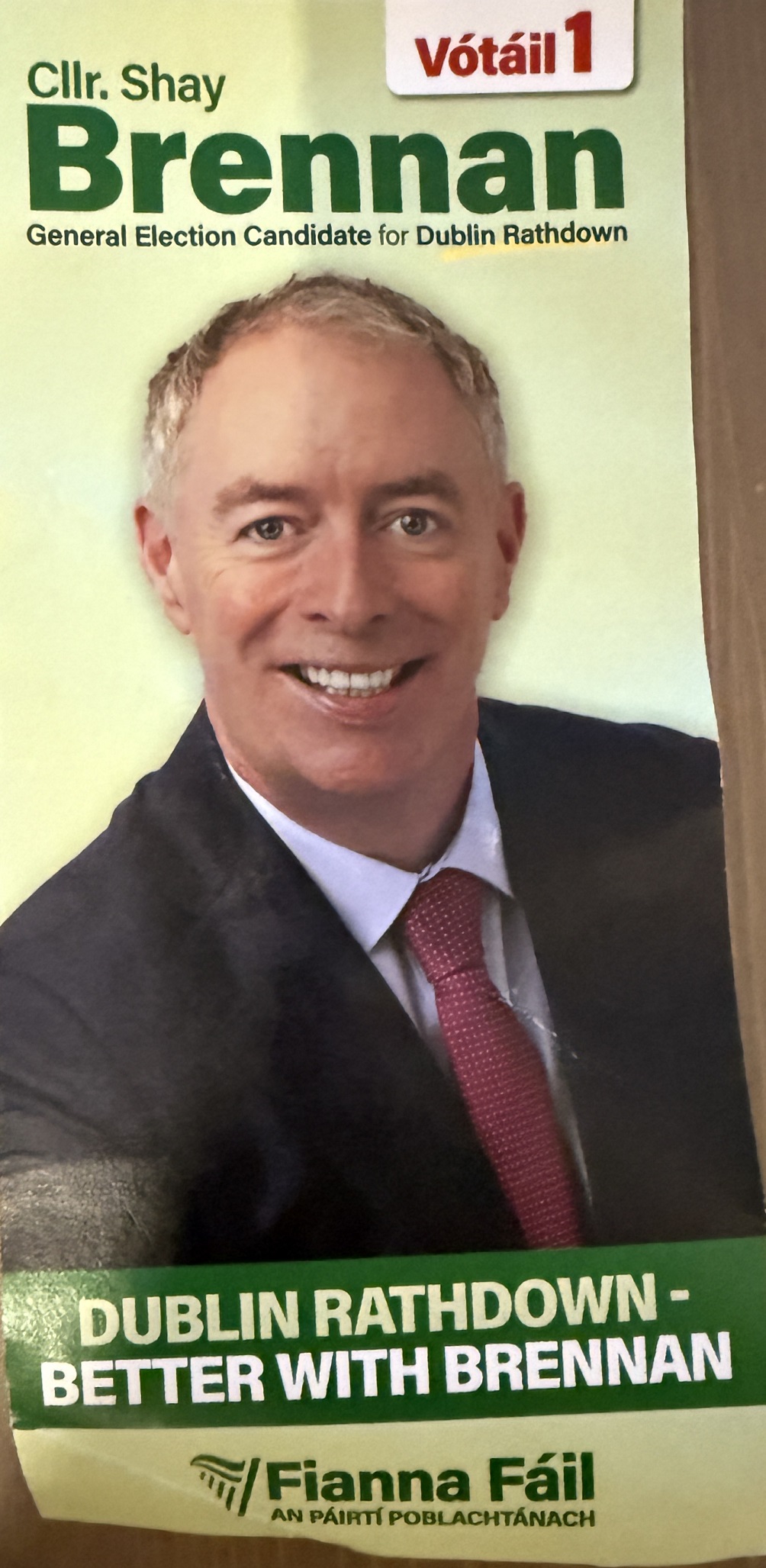 A Leaflet from Shay Brennan who is running for Fianna Fáil in Dublin Rathdown in the 2024 General Election