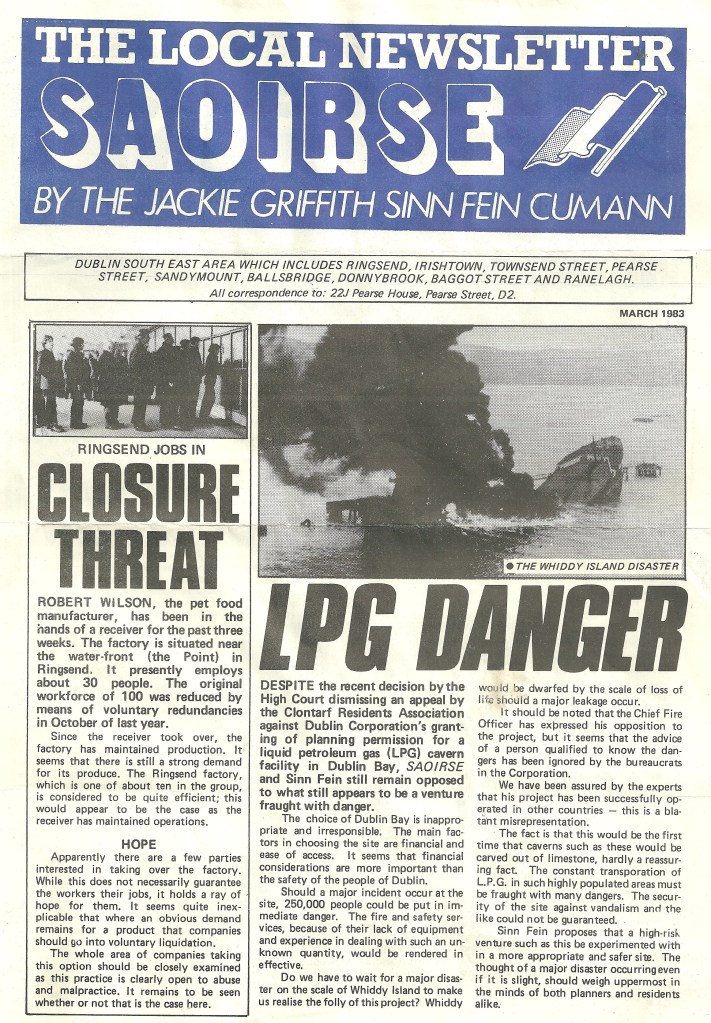 March 1983 Edition of Saoirse – Newsletter of the Jackie Griffith Sinn Féin Cumann Dublin South East. July 25, 2022