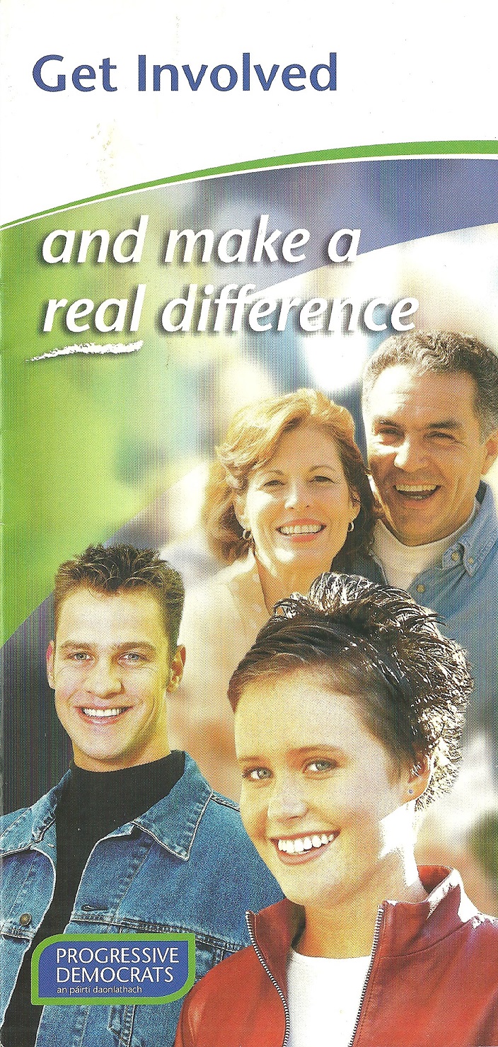 “Get Involved and make a real difference” a Progressive Democrats Dublin South East recruitment leaflet circa 2004.