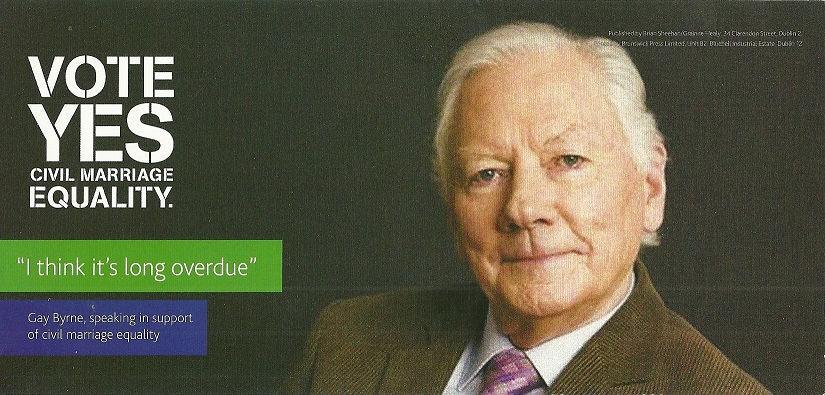A series of flyers from ‘Yes Equality’ from the Marriage Equality Referendum. Amongst the ones with ‘personalities’ we have Gay Byrne, Babs Keating, Eamon McGee and Marie Brady.