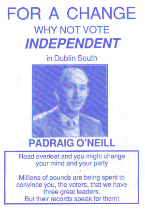 From the 1989 General Election Campaign, where Fianna Fail called an unneccessary election in the hope of gaining an overall majority. Lots here of interest although these lines…..