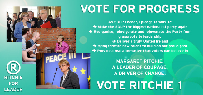 A Margaret Ritchie flyer from the SDLP Leaderhip contest where she outpolled Alasdair McDonnell by 222 votes to 187 to take over from Mark Durkan.