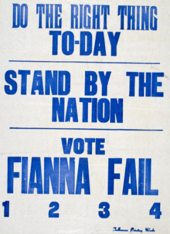 “Do The Right Thing Today -Stand By The Nation – Vote Fianna Fail”.