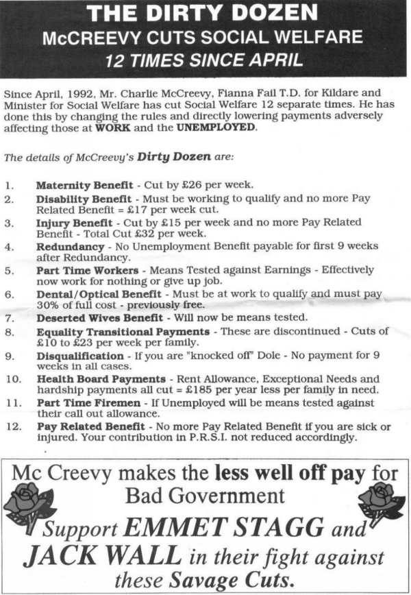 “The Dirty Dozen -McCreevy Cuts Social Welfare 12 Times Since April” -Emmet Stagg, Jack Wall- Labour Party- 1992 General Election June 4, 2010