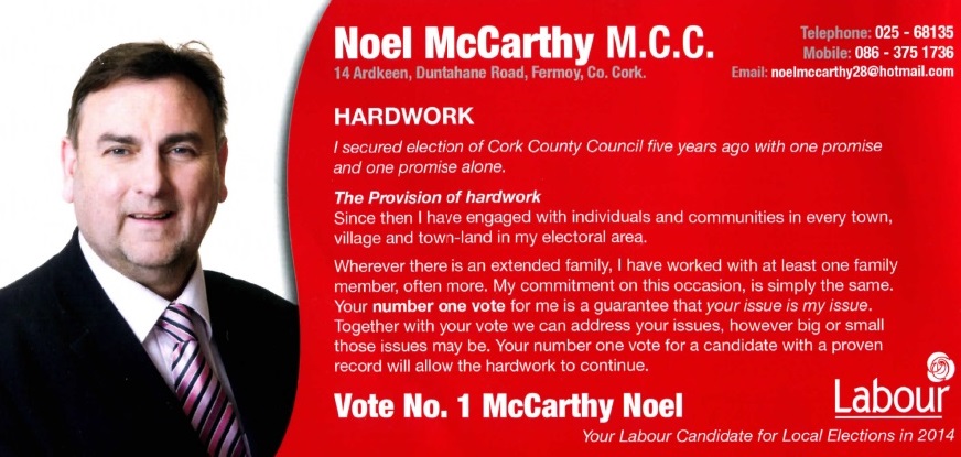 Flyers from Noel McCarthy -Labour – Fermoy -2014 Local Elections April 12, 2014