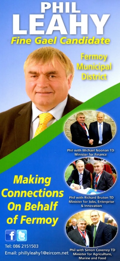 Leaflet from the late Phil Leahy -Fine Gael -Fermoy April 8, 2014