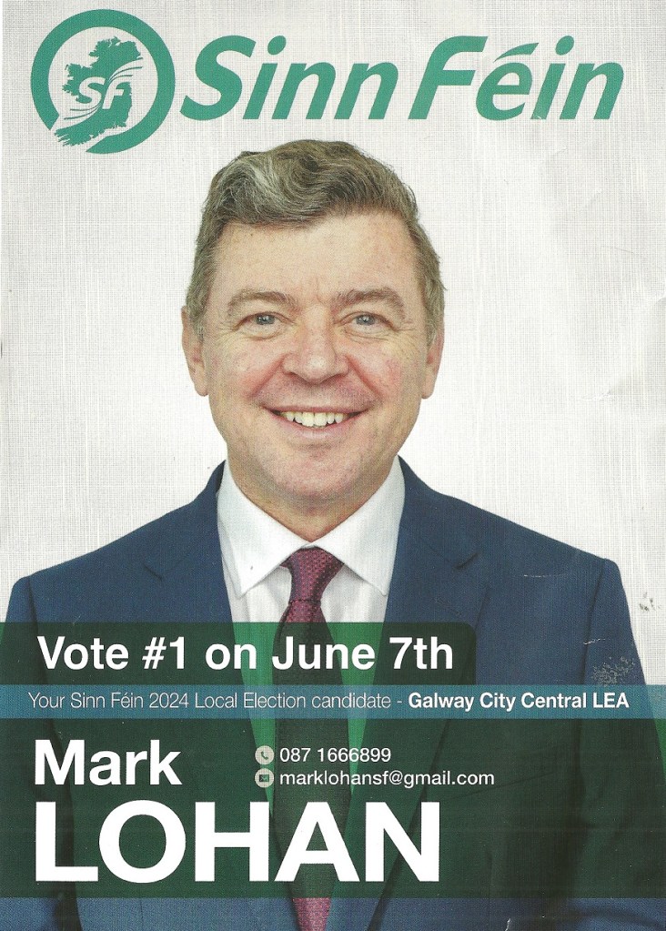 A leaflet from Mark Lohan who is running for Sinn Féin in Galway City Central in the 2024 Local Elections
