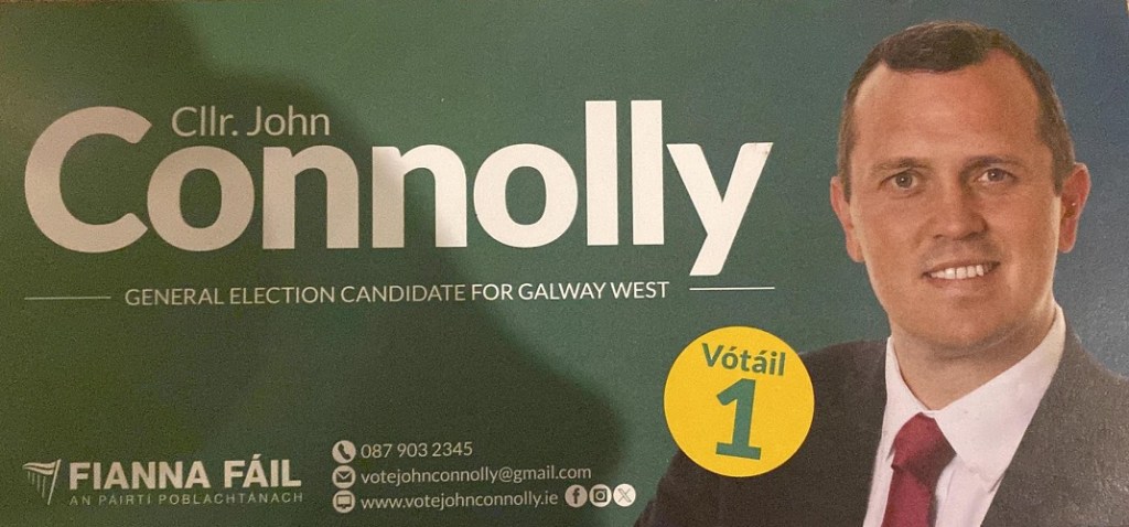 A Leaflet from John Connolly who is running for Fianna Fáil in Galway West in The 2024 General Election