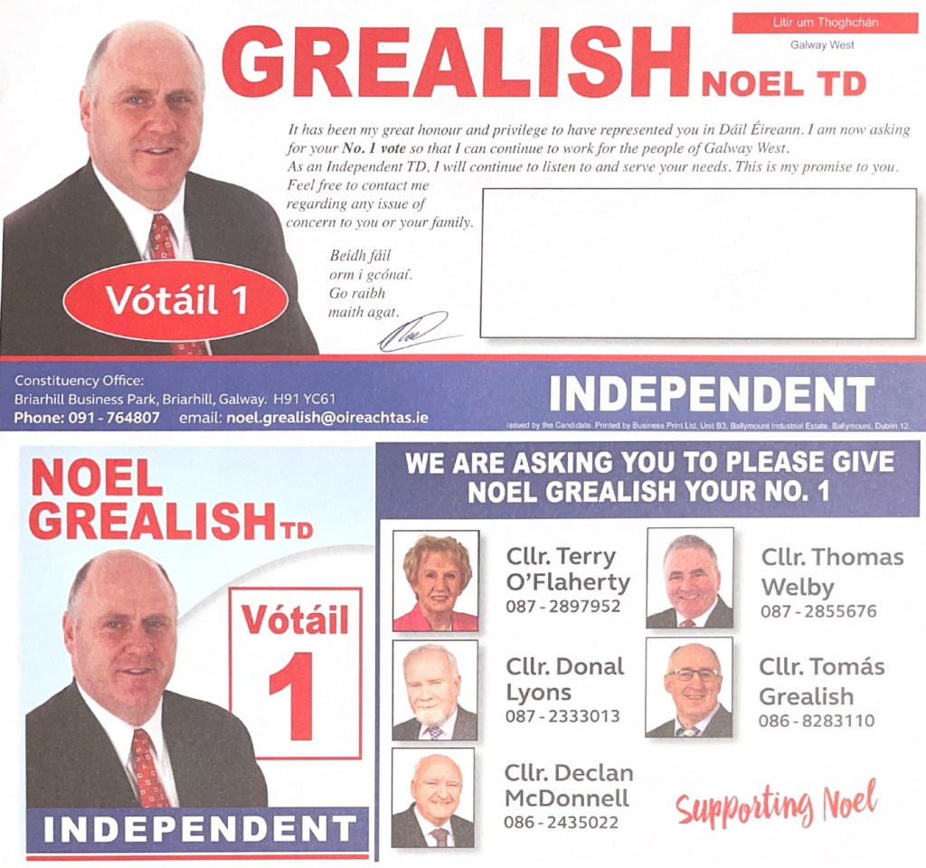 A Leaflet from Noel Grealish who is running as an Independent in Galway West in the 2024 General Election
