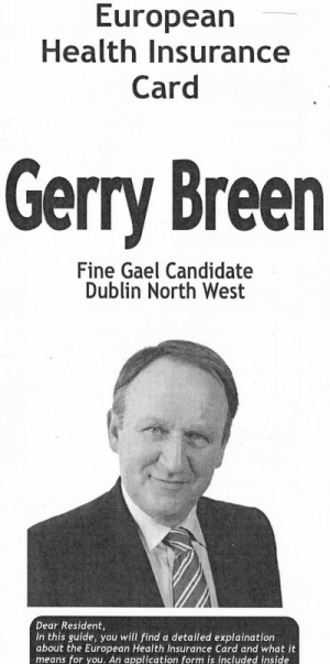 An odd one this, delivered for Gerry Breen one of the Fine Gael candidates in Dublin North West in the 2011 General Election.